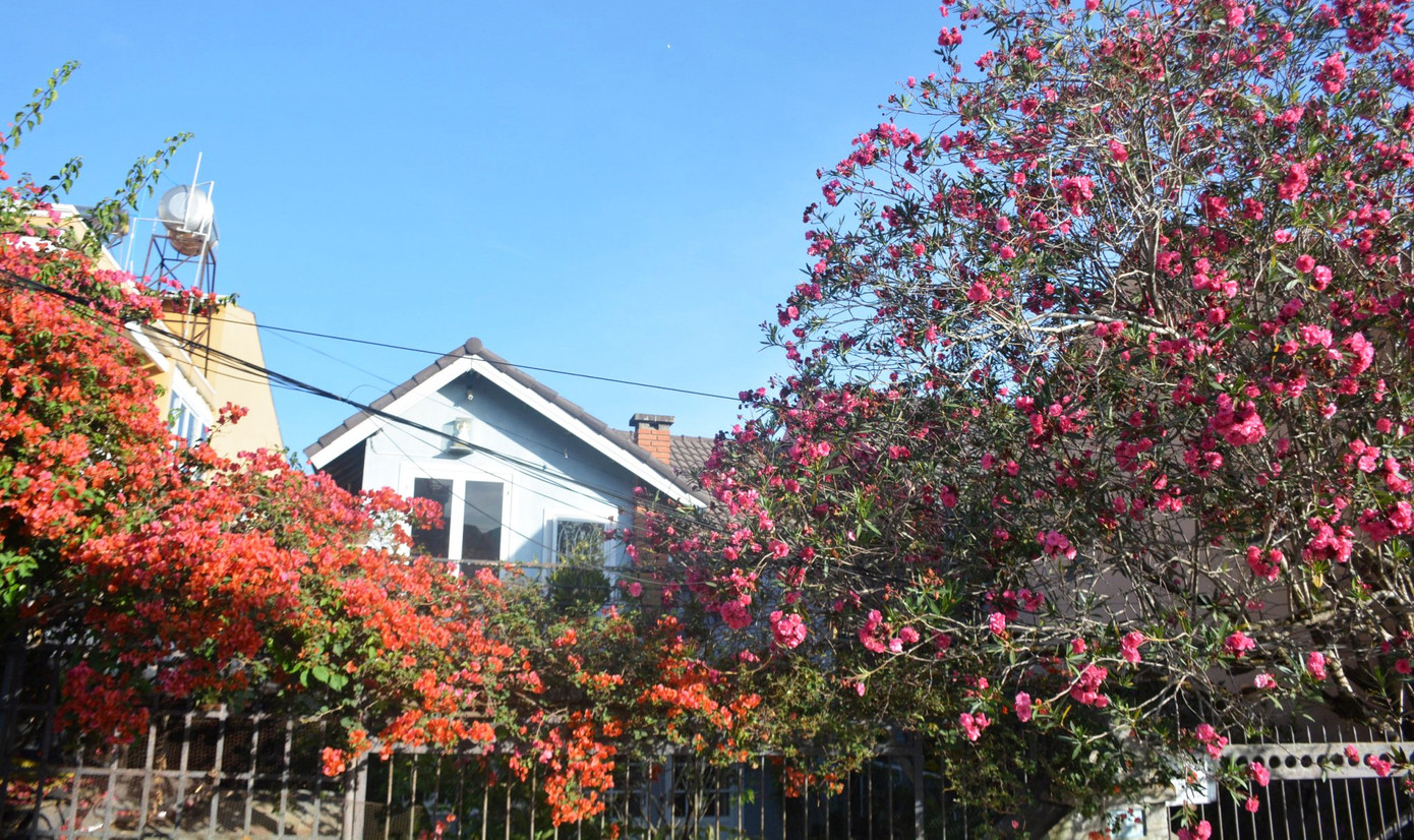 Thành phố hoa đang trong giai đoạn chuyển mùa, vòm trời xanh biếc, nắng vàng ươm nhưng vẫn se se lạnh, hoa giấy cùng nhiều loài hoa khác đua nở như muốn gửi trọn sắc hương để bước sang mùa xanh lá.