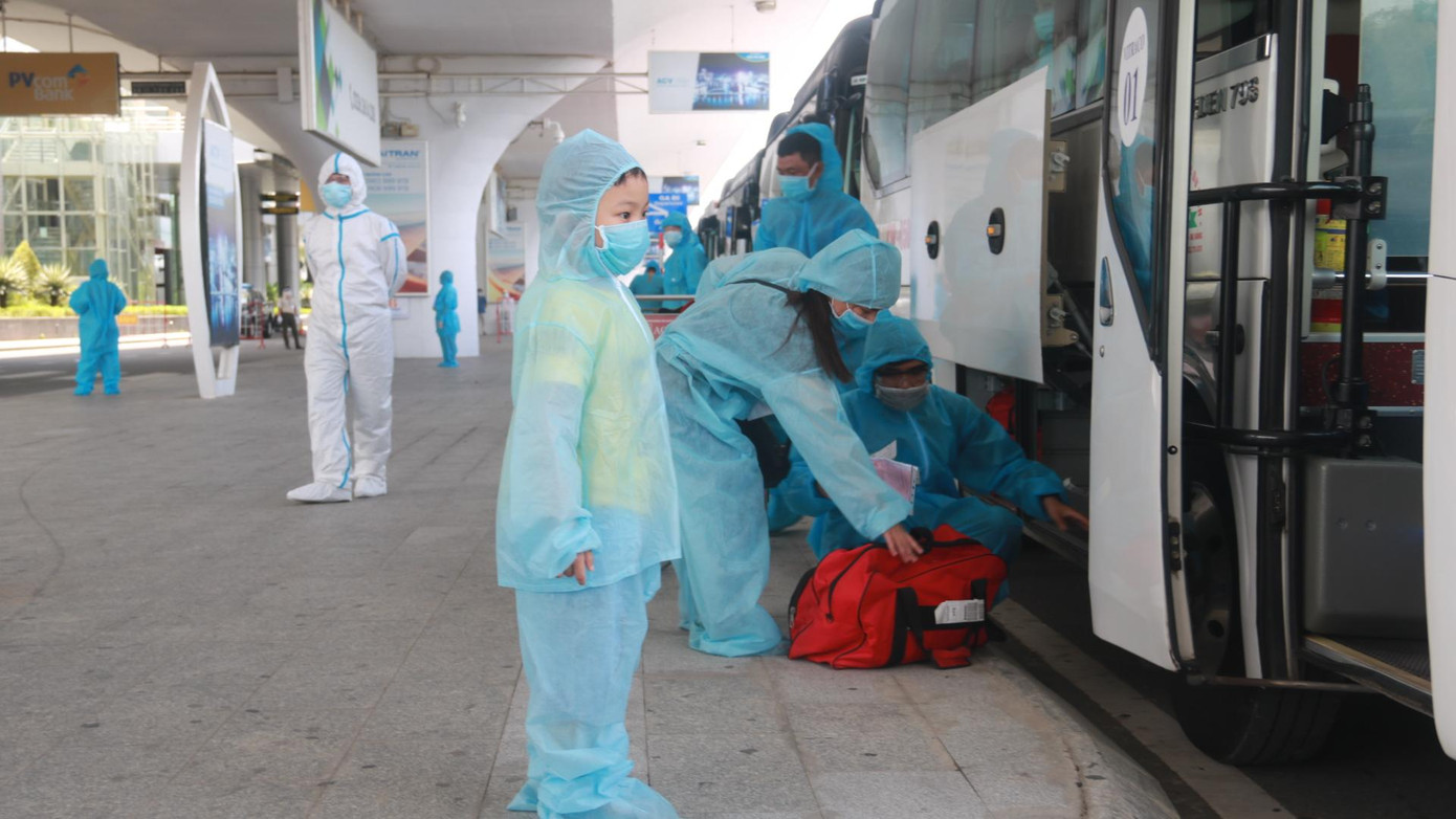 TPO - Khoảng 11h ngày 21/7, chuyên cơ VN122 chở 168 công dân TP Đà Nẵng từ TP HCM về quê đã đáp xuống sân bay Đà Nẵng. Sau khi thực hiện các thủ tục an toàn phòng chống dịch, các công dân đã được đưa đi cách ly tập trung tại các khách sạn 21 ngày.