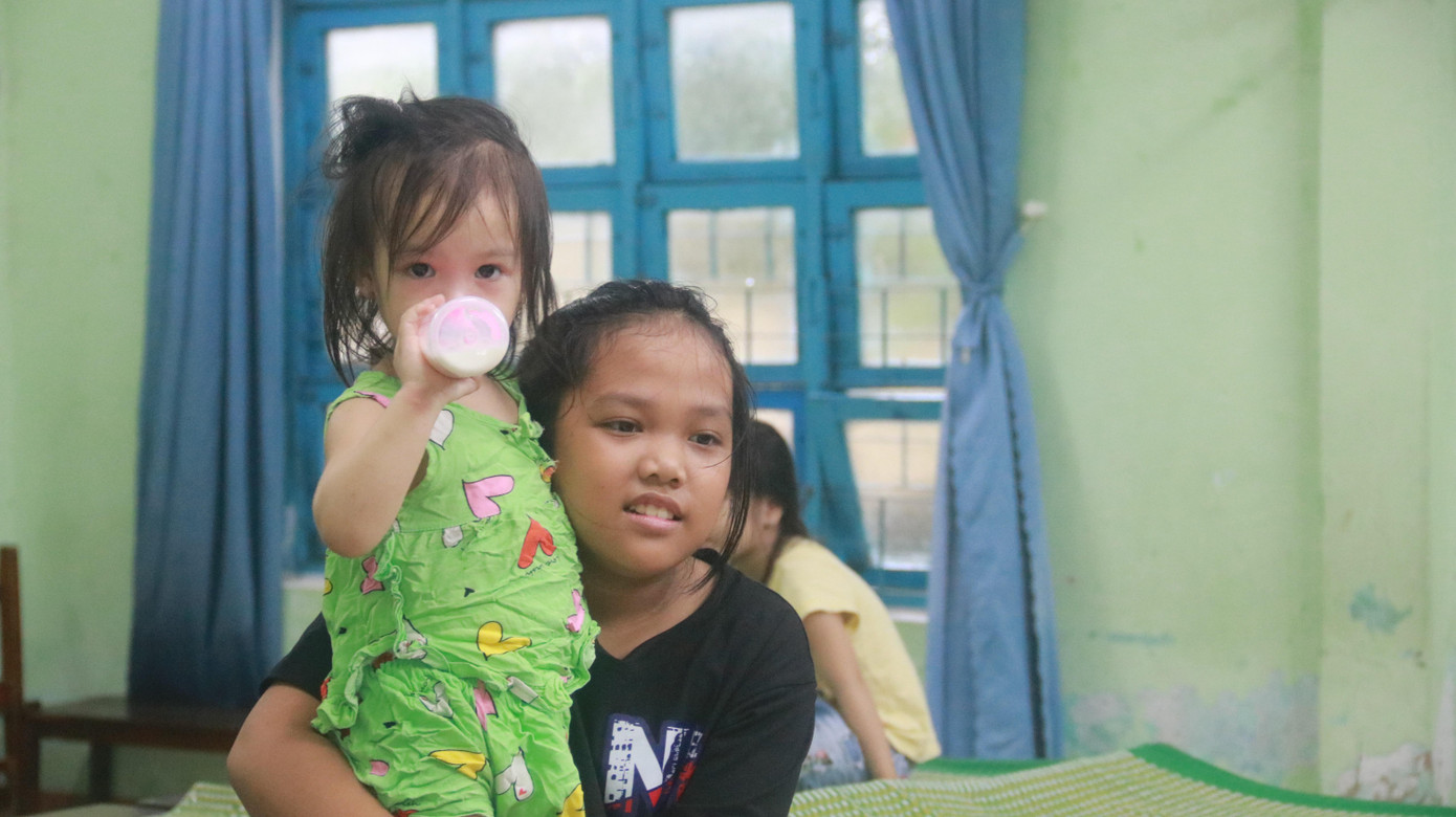 | Người già, trẻ nhỏ được ưu tiên di dời về các điểm trú tránh trước. |