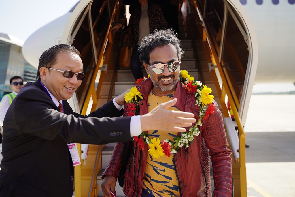Tại Cảng hàng không quốc tế Đà Nẵng, Phó Tổng giám đốc Vietjet Đỗ Xuân Quang đã tham dự lễ đón và tặng hoa những hành khách đầu tiên trên loạt chuyến bay khai trương của Vietjet.