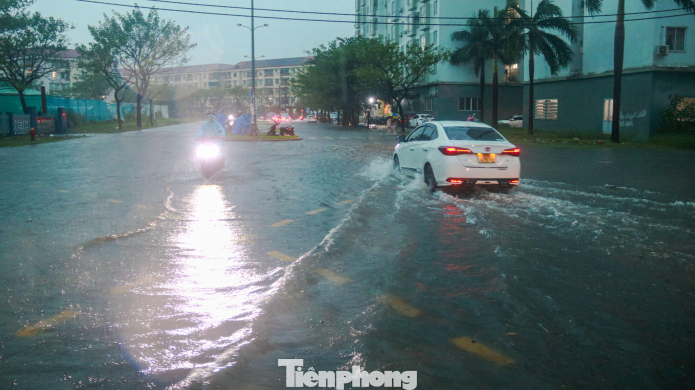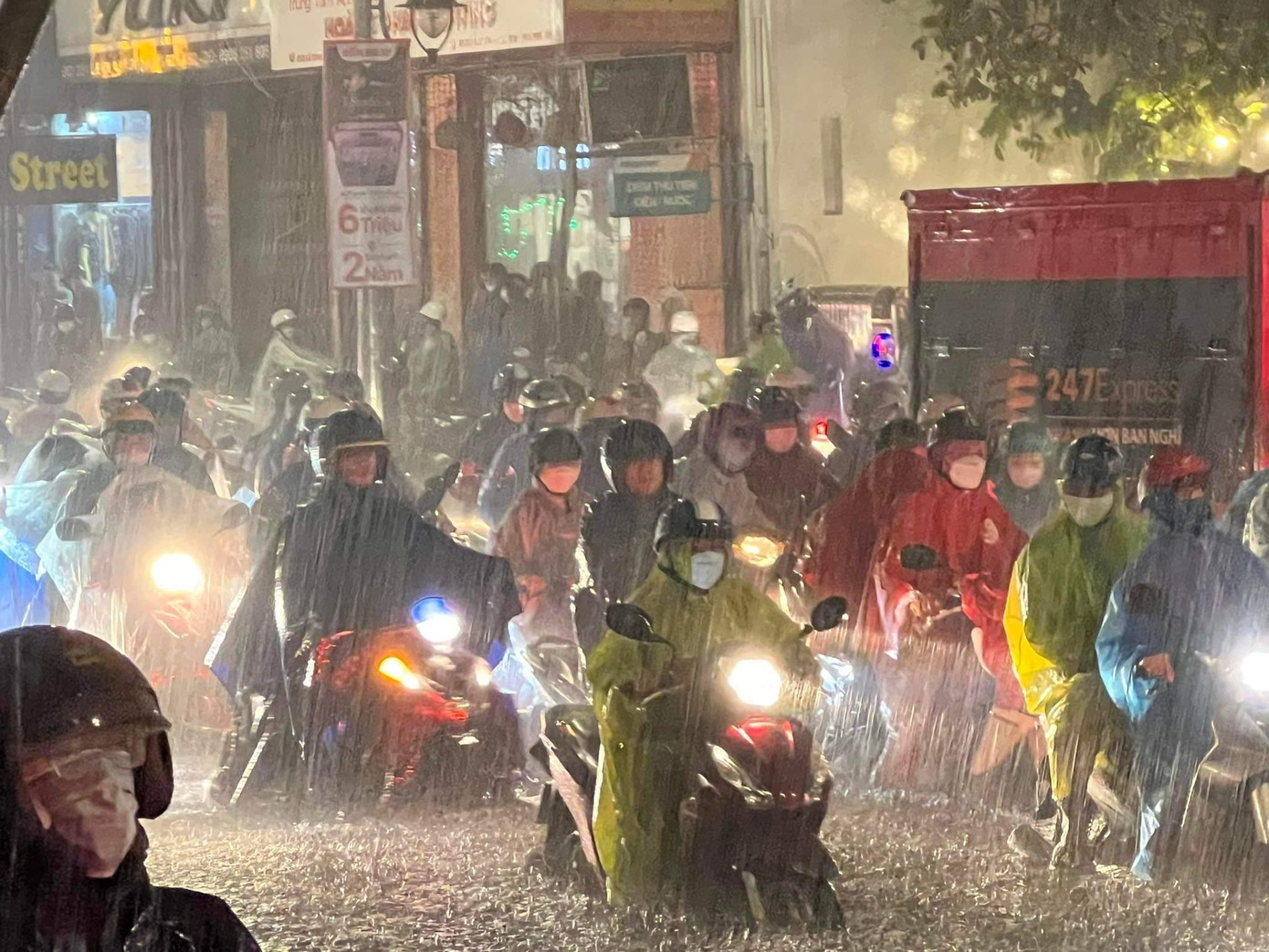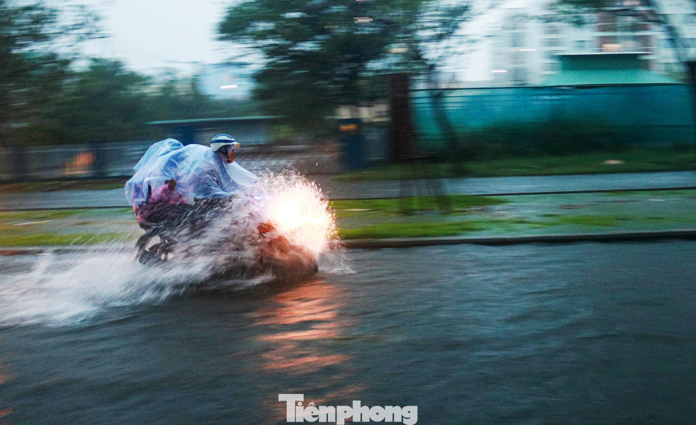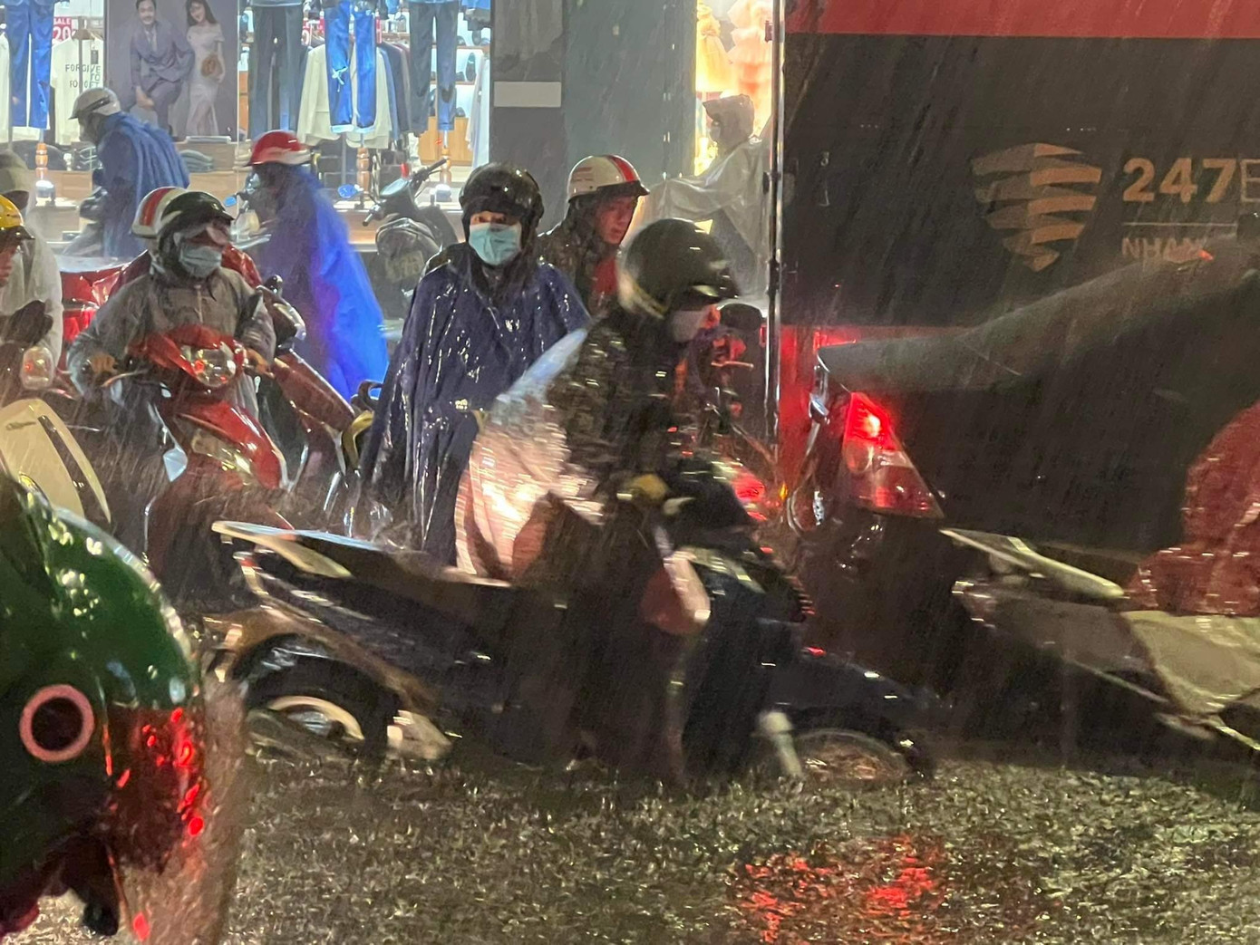 | Càng về tối, mưa càng to, các tuyến phố càng ngập nước. |