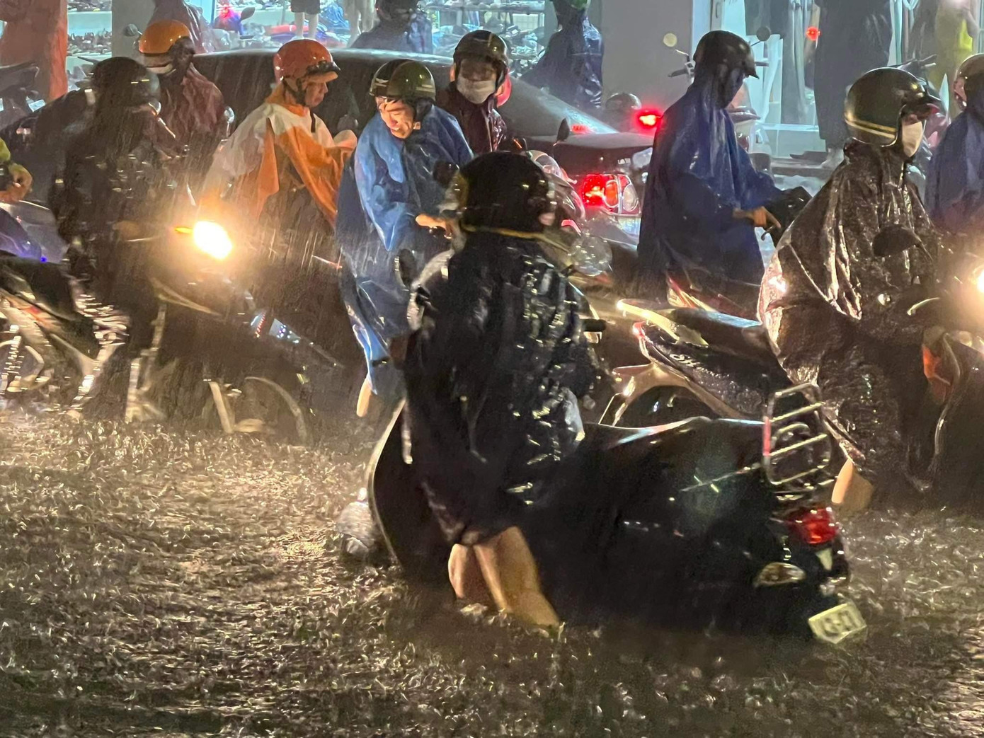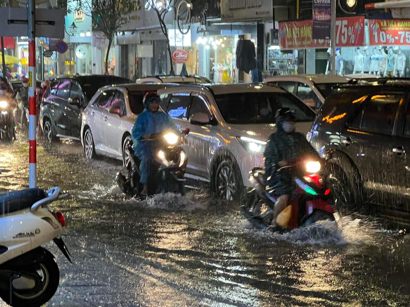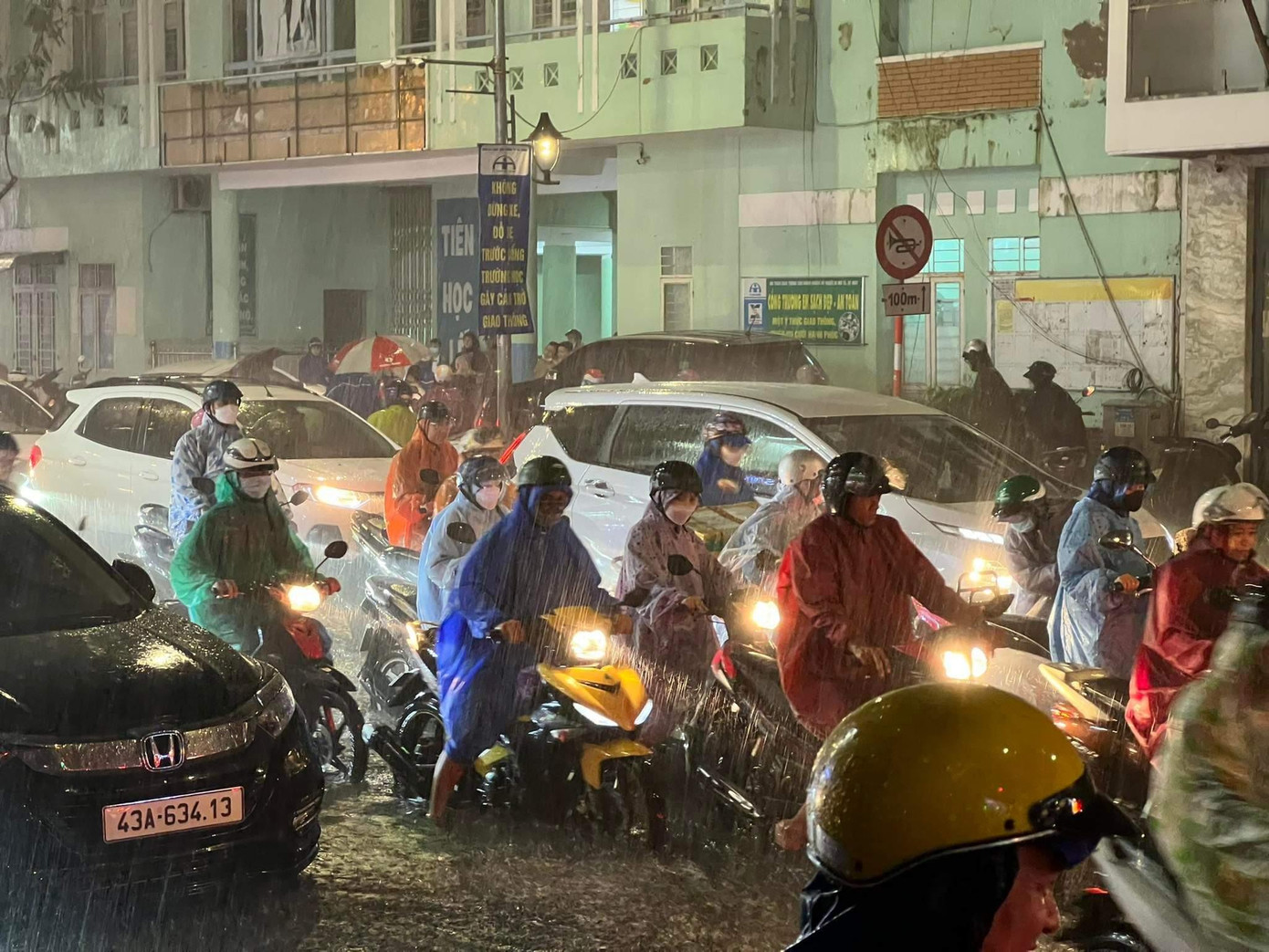 | Đường phố Đà Nẵng hỗn loạn người và xe vì mưa ngập |