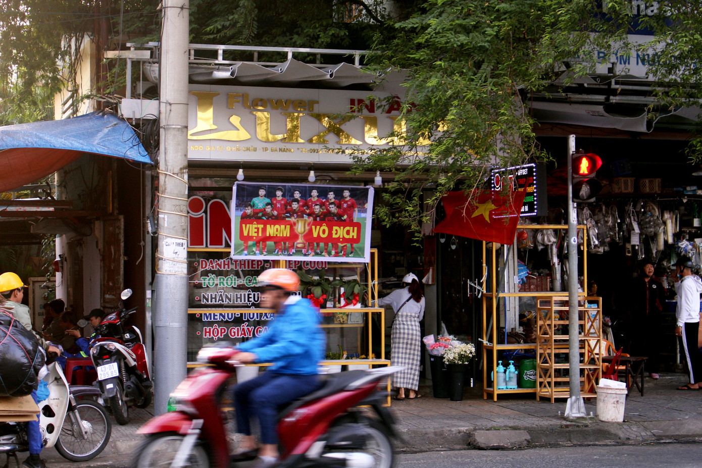 Những cửa hàng dọc các tuyến đường lớn như Bạch Đằng, Lê Duẩn, Nguyễn Văn Linh, Trần Phú... đều treo cờ, băng rôn cổ vũ U22 Việt Nam. Những bản nhạc Việt Nam ơi, Xinh tươi Việt Nam.... cùng tiếng kèn đã rộn ràng trên các con phố từ 15h.