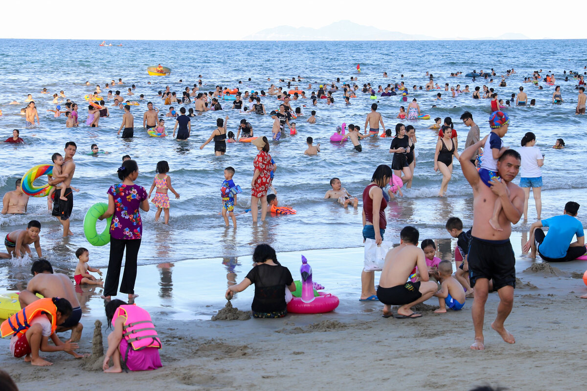 Nhiều người tìm đến bãi biển để tập thể dục, chơi thể thao, rèn luyện sức khoẻ. Một nhân viên cứu hộ cho biết, lượng khách có giảm so với các dịp cuối tuần trước, nhưng không đáng kể.