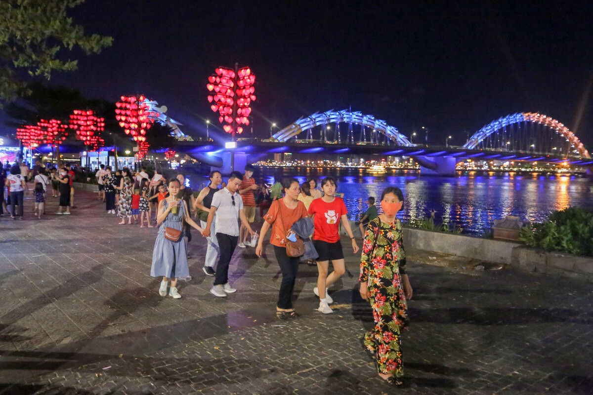 Vào buổi tối, các điểm tham quan thành phố như cầu Rồng, cầu Tình Yêu ven sông Hàn cũng tấp nập du khách.