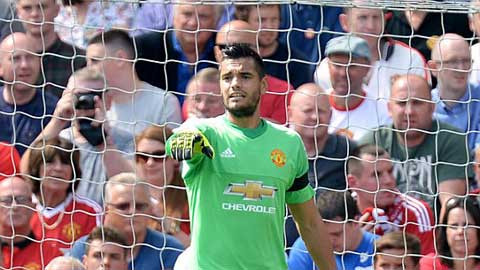 Khi camera hướng lên khán đài, chúng ta nhìn thấy rất rõ 3 thủ thành hàng đầu của M.U ngồi trên đó: David de Gea, Victor Valdes và Anders Lindegaard. Vậy mà HLV Van Gaal lại dùng Sergio Romero, người mà lần cuối ra sân tại giải VĐQG đã là tháng 12 năm ngoái. Đấy là bất ngờ thứ nhất!