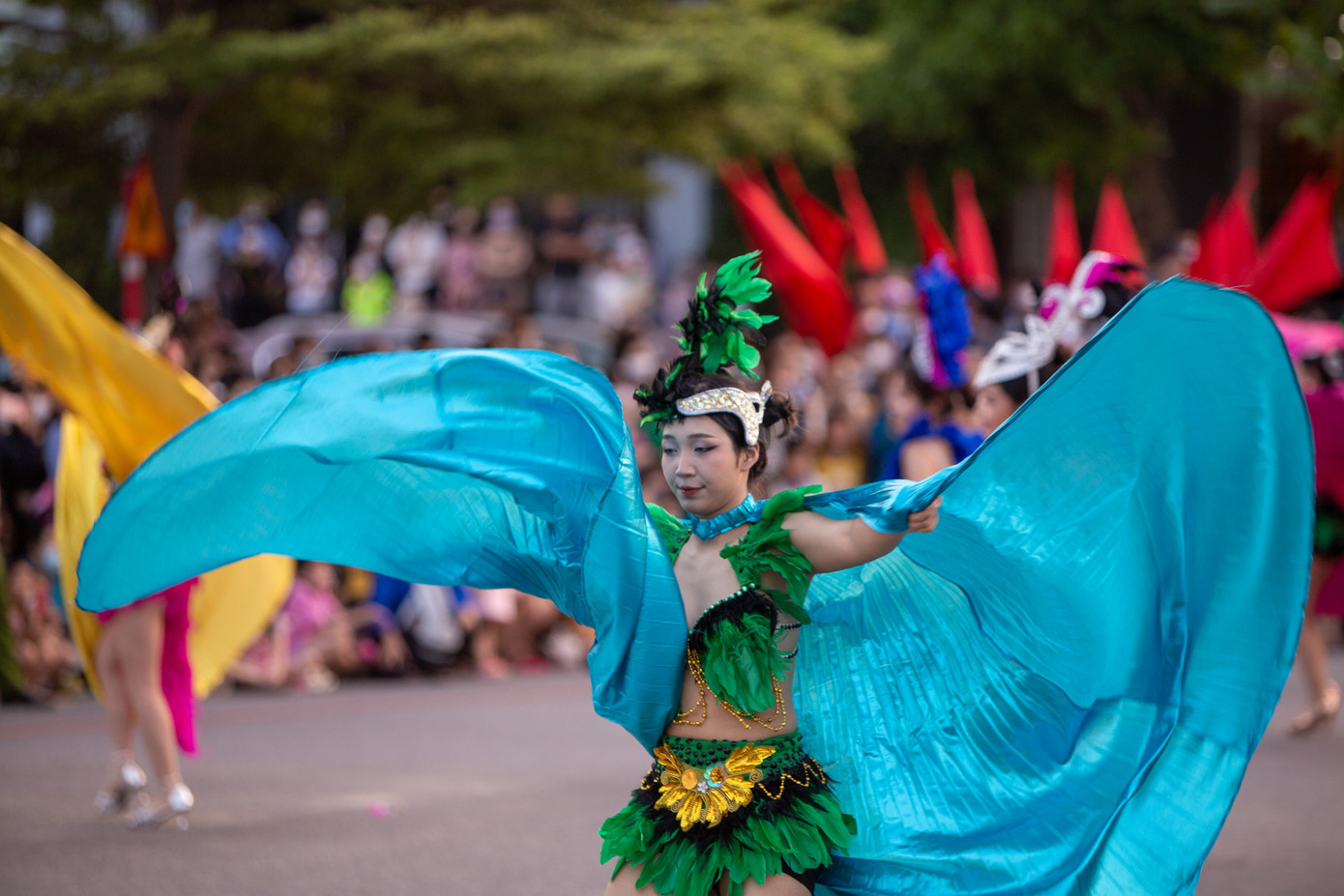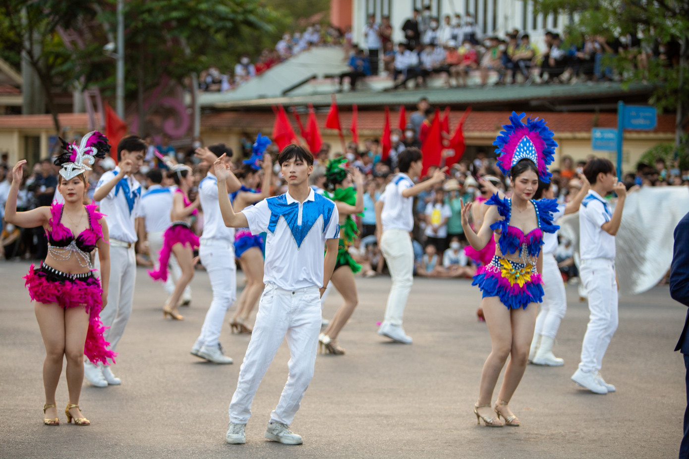 | Lễ hội đường phố có sự tham dự của hơn 350 nghệ sĩ, người mẫu các đoàn, nhóm nhảy... tạo nên khoảng không gian náo nhiệt trên một số tuyến phố của tỉnh Quảng Bình |