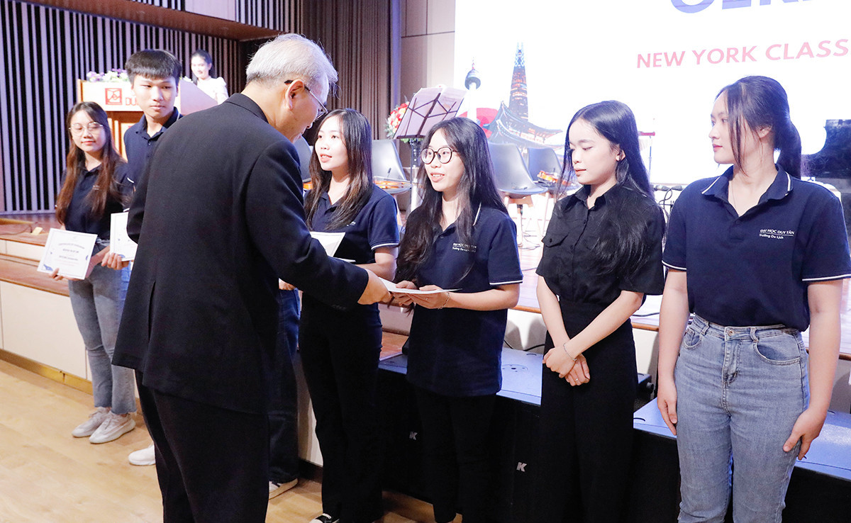 Ngay tại buổi hòa nhạc, Hiệp hội Âm nhạc Cổ điển New York cũng đã trao tặng 10 suất học bổng cho các bạn sinh viên ĐH Duy Tân có hoàn cảnh đặc biệt và đã đạt thành tích xuất sắc trong học kỳ vừa qua. Đây thực sự là nguồn động viên quý giá, tiếp thêm năng lượng cho các bạn trong hành trình học tập sắp tới để đạt được nhiều thành công ở tương lai.