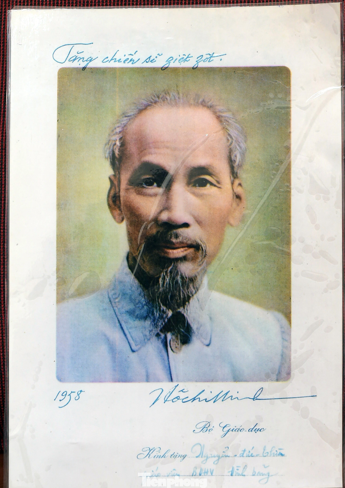 Đây là phần thưởng thầy Nguyễn Đức Thìn được Bộ Giáo dục tặng vì có thành tích trong xóa nạn mù chữ trong phong trào bình dân học vụ năm 1958. Phần thưởng là ảnh chân dung và bút tích Bác Hồ đề tặng chiến sĩ diệt dốt.