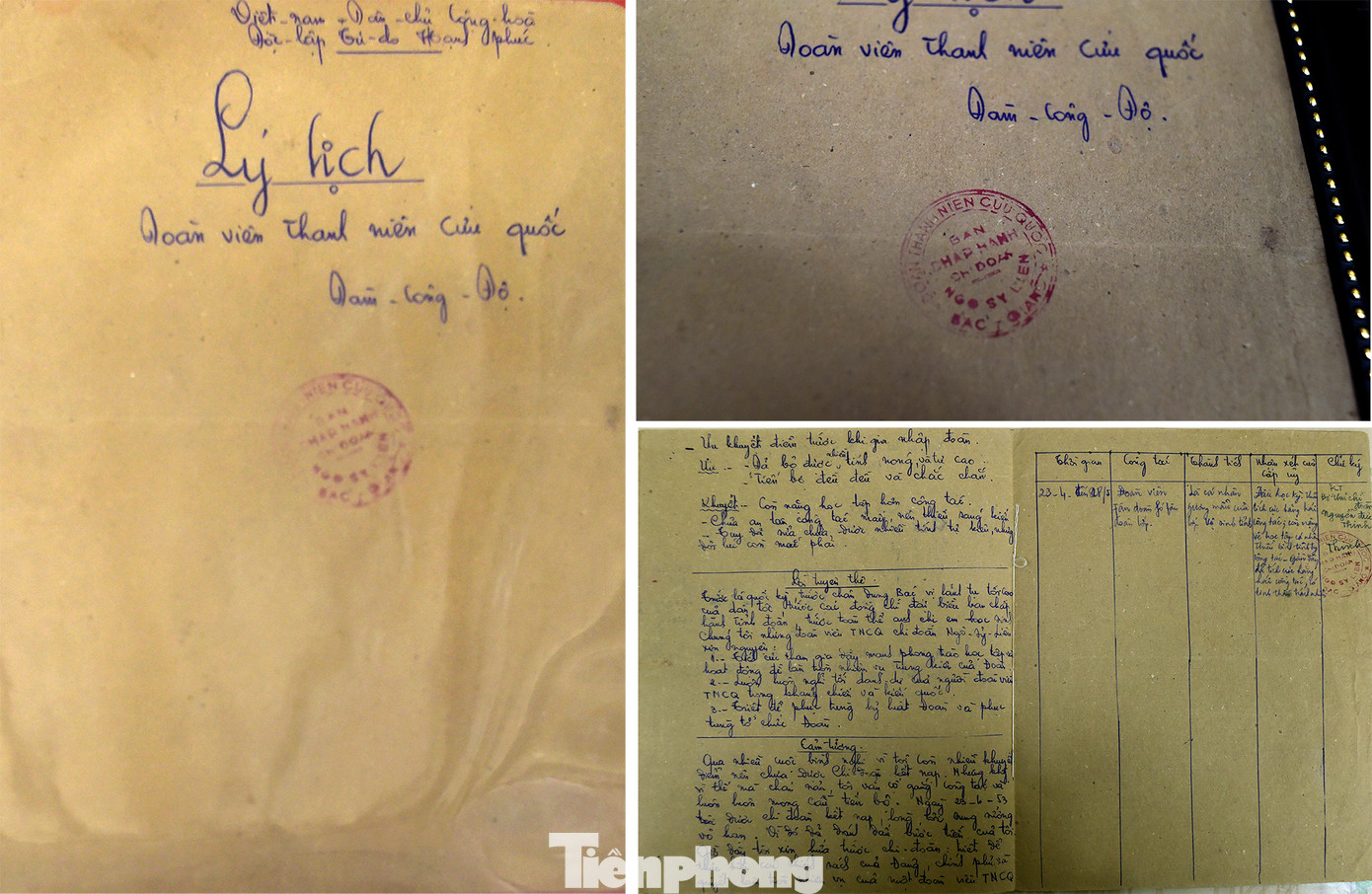 Lí lịch đoàn viên Thanh niên cứu quốc được viết tay trên giấy dó. Đây là tư liệu quý không chỉ bởi chất liệu, năm 1956 mà ở trên dấu đỏ có chữ Đoàn Thanh niên Cứu quốc.