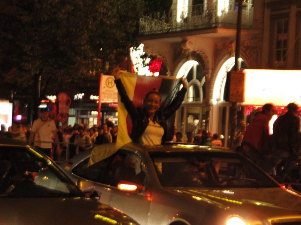 Tại trung tâm thành phố cảng Hamburg, quận St. Paoli, dòng xe ô tô cắm cờ Đức của người dân nối đuôi nhau ken đặc cả con đường dài. Chốc chốc các xe lại đồng loạt bóp còi để chào mừng chiến thắng.