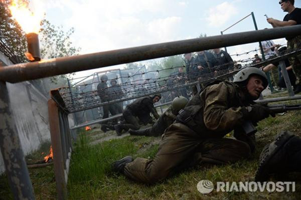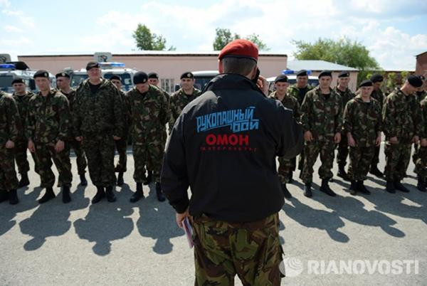 Khẳng định đẳng cấp đủ để đội mũ nồi đen, các binh sĩ thuộc lực lượng đặc nhiệm OMON của Nga đã có những pha so găng nảy lửa.