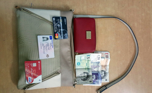 Được trả lại túi xách có ví tiền, ngoại tệ, thẻ ATM… thiếu nữ ngoại quốc bày tỏ lòng cảm ơn với các trinh sát.