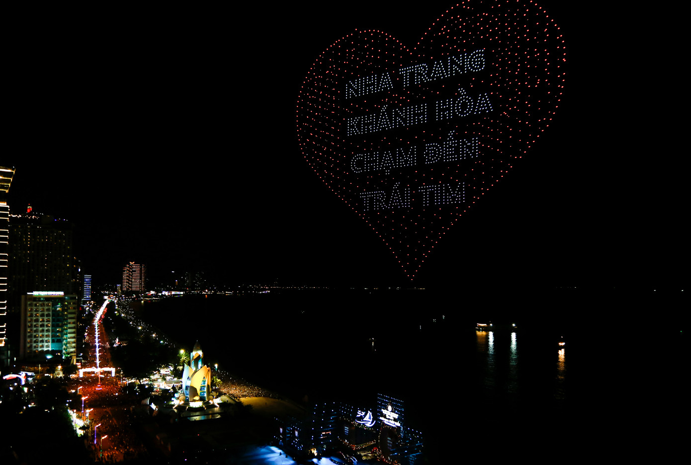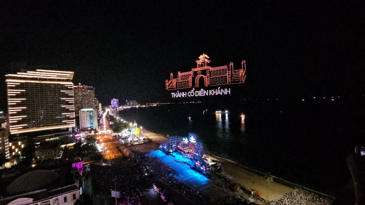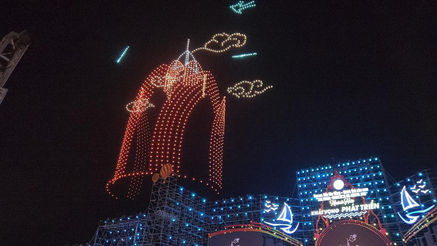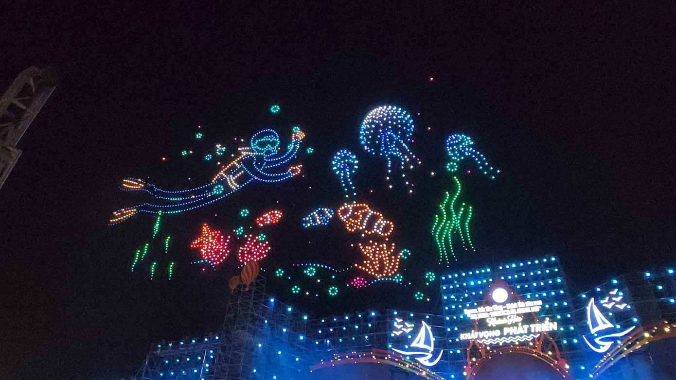 Màn trình diễn này có khoảng 12 hình ảnh được drone light sắp xếp thành danh lam, thắng cảnh và biểu tượng của Khánh Hòa. Mở đầu là hình ảnh chim yến vút bay lên bầu trời, thể hiện sự vươn cao, vươn xa của địa phương. Các hình ảnh khác như Mũi Đôi - Hòn Đầu, Tháp Bà Ponagar, Thành cổ Diên Khánh, Tháp Trầm Hương cũng hết sức ấn tượng. Kết thúc là logo du lịch Khánh Hòa với slogan “Khánh Hòa khát vọng phát triển”.