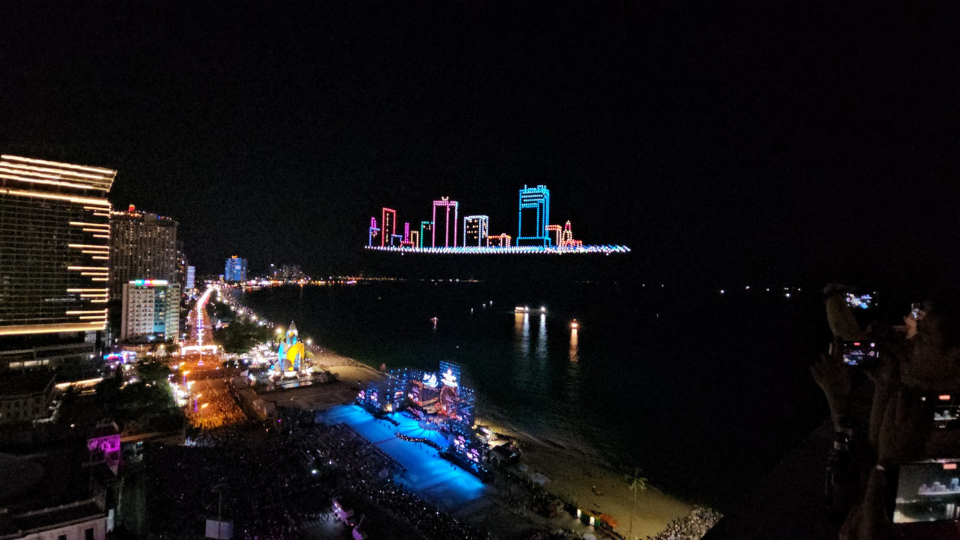 Đặc biệt, điểm nhấn của đêm khai mạc chính là màn trình diễn ánh sáng bằng thiết bị bay không người lái lần đầu tiên xuất hiện với số lượng nhiều nhất tại Việt Nam. Với 1.653 thiết bị bay không người lái trình diễn kết hợp trên nền âm nhạc hiện đại trong 15 phút, khán giả đã được mãn nhãn với những hình ảnh rực rỡ sắc màu.