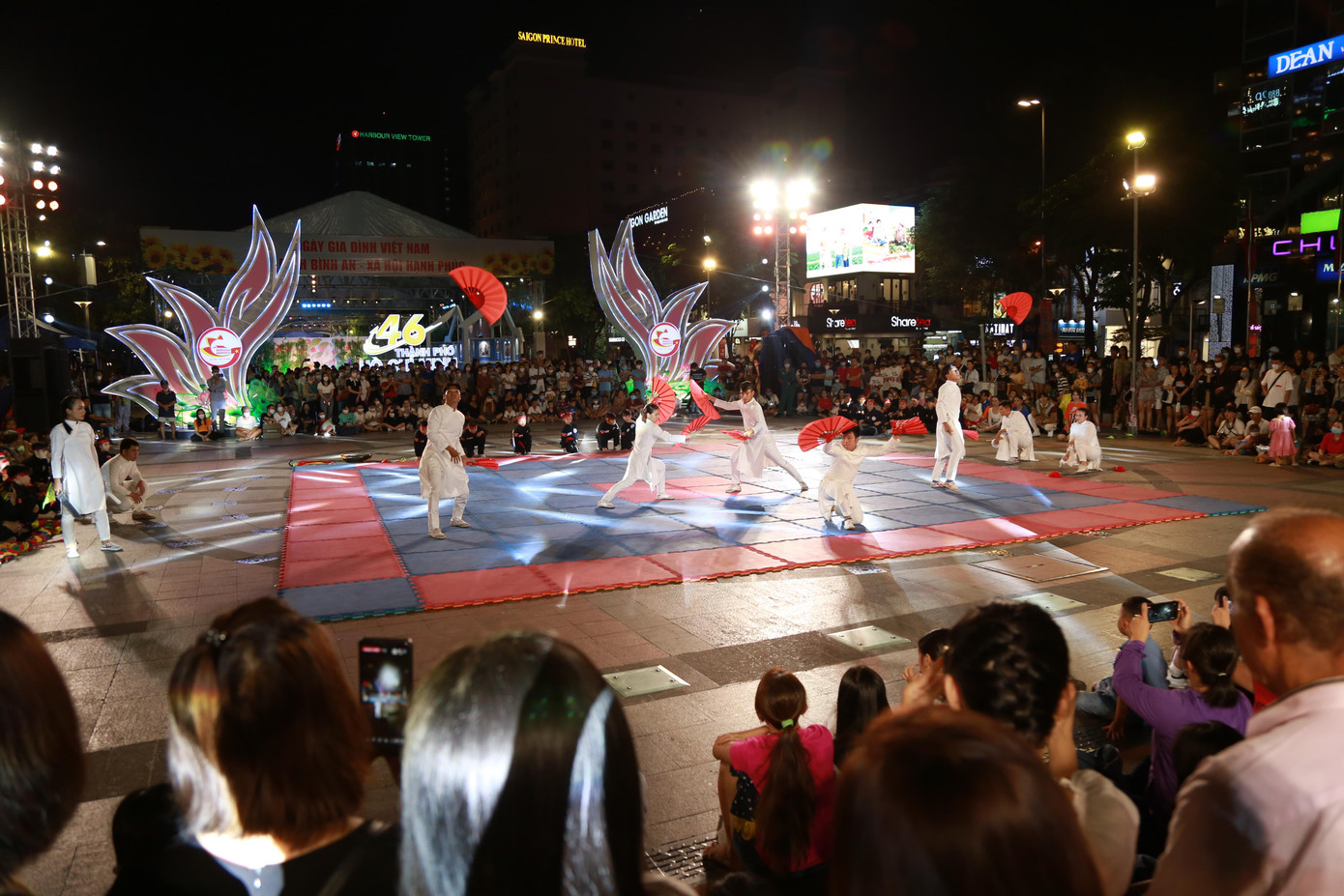 | Nằm trong khuôn khổ các hoạt động chào mừng 46 năm ngày thành phố Sài Gòn - Gia Định chính thức mang tên Chủ tịch Hồ Chí Minh, tại Phố đi bộ còn diễn ra các hoạt động diễn xướng văn nghệ đặc sắc phục vụ đa dạng nhu cầu thưởng lãm nghệ thuật của đông đảo khán giả trong và ngoài nước. Ảnh: Ngô Tùng |
