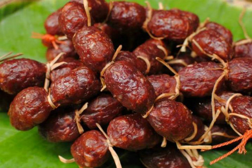 Miếng lạp xưởng bò làm thủ công thành từng khoanh nhỏ, chắc, nhiều thịt, có vị chua đặc trưng không thể lẫn với bất kỳ sản phẩm nào khác, giá dao động 250.000 -270.000 đồng một kg.