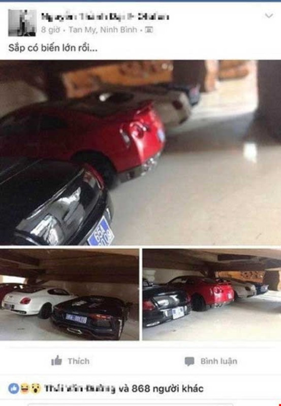 Trước đó, ngày 7/2, trên một diễn đàn lớn về ô tô, một người dùng mạng xã hội đăng một loạt hình ảnh về dàn “siêu xe” Lamborghini, Bentley… gắn biển xanh của Cần Thơ như 65A - 000.09, 65A - 001.13, 65A - 111.33 và 65A - 000.54 kèm theo dòng chữ: “Sắp có biến lớn rồi…”. Mặc dù đây là hình ảnh của những chiếc xe ô tô đồ chơi nhưng nhiều người đã hiểu lầm là xe thật, thu hút sự quan tâm của cộng đồng mạng.
