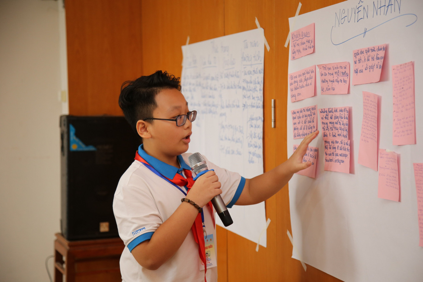 Bạn Bùi Thị Quỳnh Chi (học sinh lớp 9C, trường THCS Hoàng Xuân Hãn, Đức Thọ, Hà Tĩnh), tổ trưởng tổ thảo luận số 3 kể, bản thân từng bị cô lập, nói xấu chỉ vì giọng nói địa phương không giống các bạn trong lớp. Quỳnh Chi từng buồn phiền, chán nản nhưng may mắn được bố mẹ động viên, cùng sự giúp đỡ của thầy cô nên bản thân đã dần vượt qua và tự tin vươn lên học tốt, trở thành cán bộ Đội gương mẫu xuất sắc.