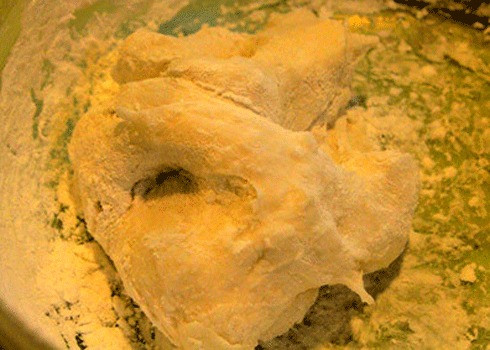 - Đổ bột ra một chiếc mâm lớn, đun sôi nước. Rưới từ từ nước sôi lên phần bột, dùng đũa trộn đều. Sau đó dùng tay nhồi đến khi bột kết thành một khối, mềm, mịn và dai là được.