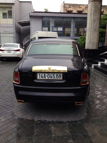 Ngoài xế sang Range Rover phiên bản giới hạn Autobiography Ultimate Edition lần đầu tiênmạ vàng 24K trên, đại gia đất Quảng này còn sở hữu siêu xe Rolls-Royce Phantom cũng được mạ vàng 24K với hình rồng độc đáo.