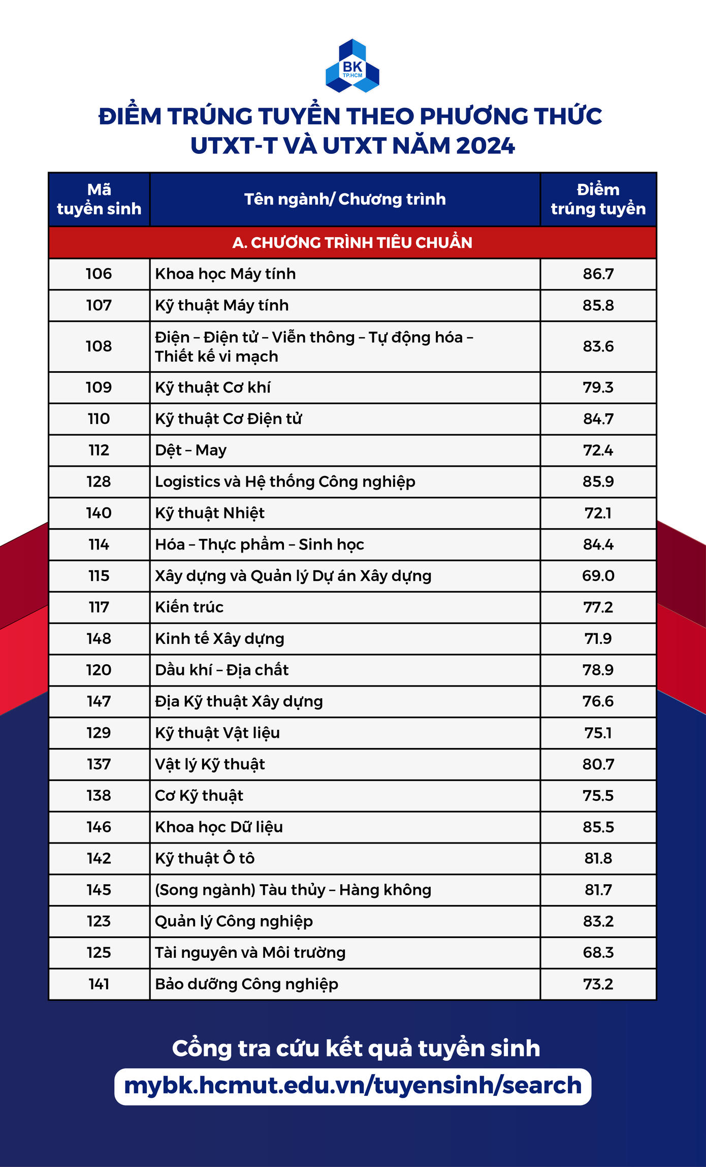 Theo đó, Trường ĐH Bách khoa TPHCM vừa công bố điểm chuẩn phương thức ưu tiên xét tuyển thẳng và ưu tiên xét tuyển theo quy định của Đại học Quốc gia TPHCM năm 2024 vào tối 2/7.