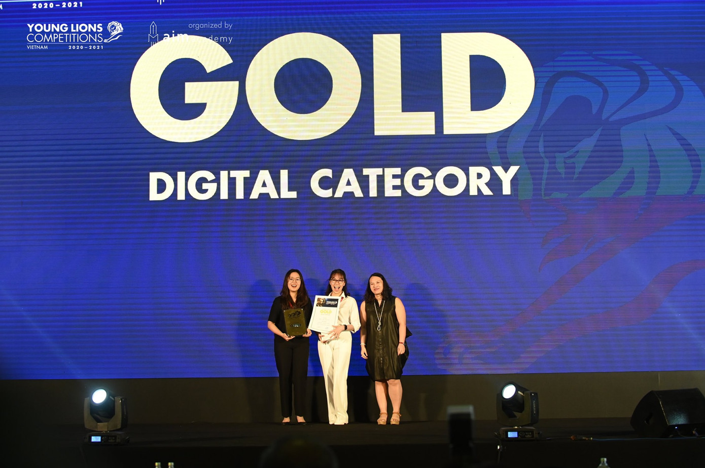 Sinh viên ngành Truyền thông chuyên nghiệp Nguyễn Minh Thy và Hồ Vũ Phương Uyên đã giành giải Vàng hạng mục Kỹ thuật số.