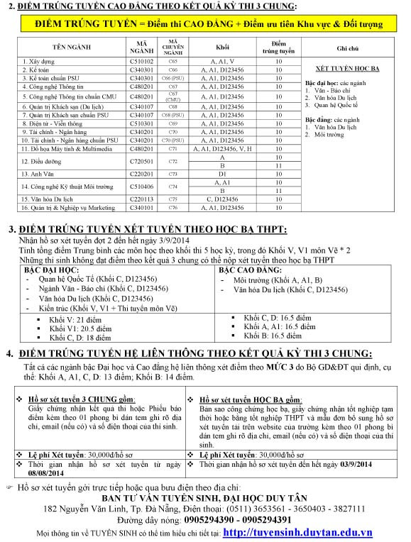 Google News Đại học Duy Tân - Đà Nẵng thông báo điểm trúng tuyển