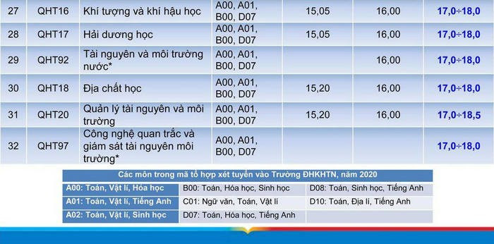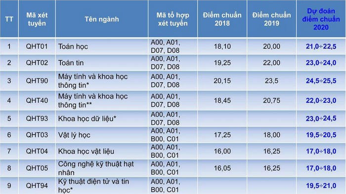 Điểm chuẩn dự kiến chi tiết từng ngành của ĐH Khoa học Tự nhiên (VNU) năm 2020.