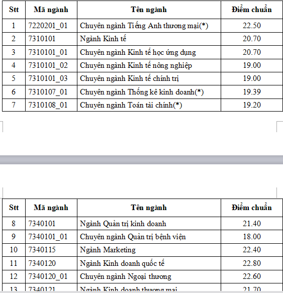 Trong khi đó, trường đại học Kinh tế TPHCM có điểm chuẩn từ 17,5 điểm đến 22,8 điểm.