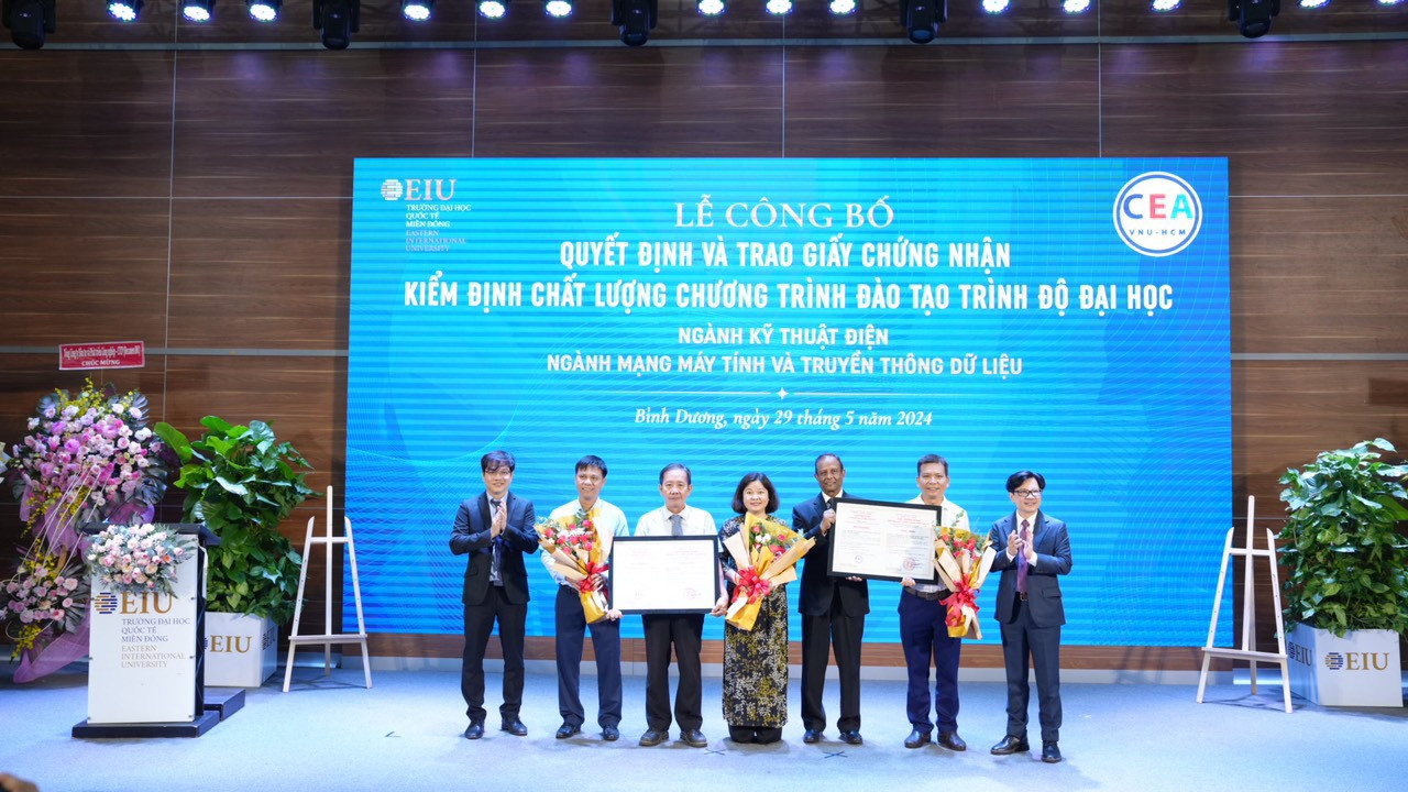 | Đại học Quốc tế Miền Đông nhận Quyết định và Giấy chứng nhận kiểm định chất lượng 2 chương trình đào tạo ngành Kỹ thuật Điện, ngành Mạng máy tính và Truyền thông dữ liệu |