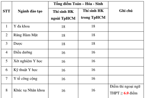 Đại học Y khoa Phạm Ngọc Thạch lấy điểm sàn xét tuyển từ 16-18