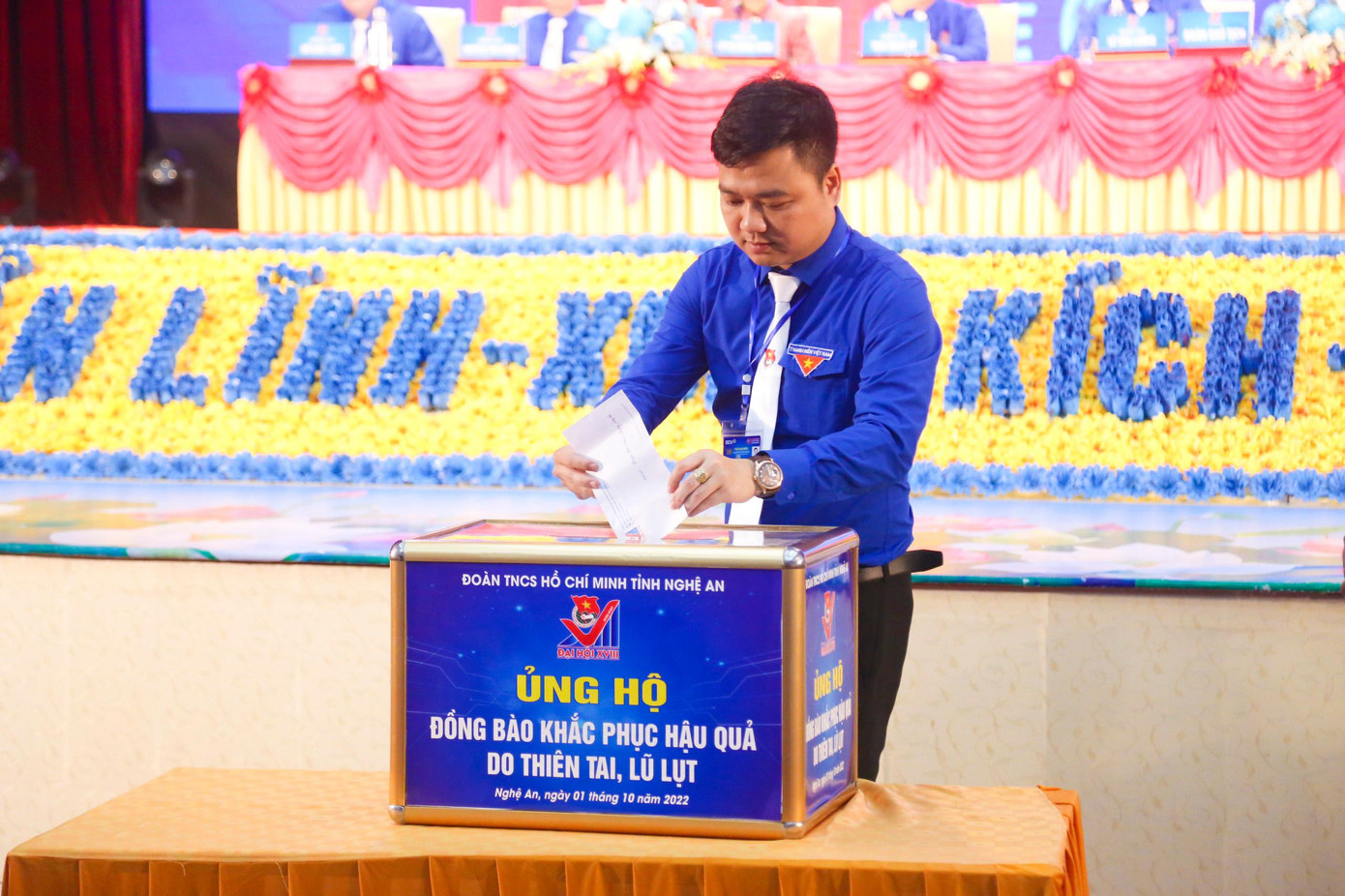 Tại Đại hội, Tỉnh Đoàn Nghệ An đã tổ chức quyên góp ủng hộ đồng bào bị thiệt hại do bão số 4 gây ra, giúp đỡ đồng bào chịu hậu quả thiên tai, lũ lụt sớm ổn định cuộc sống, đồng thời phát huy vai trò xung kích, tình nguyện của tuổi trẻ trong đồng hành với các hoạt động an sinh xã hội.