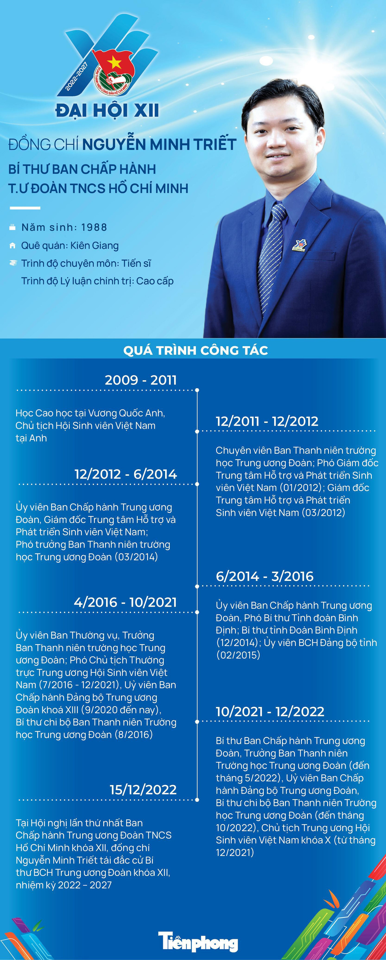 TPO - Ban Bí thư T.Ư Đoàn khóa XII nhiệm kỳ 2022 - 2027 gồm 6 anh, chị. Anh Nguyễn Minh Triết, Bí thư T.Ư Đoàn khóa XI, được tín nhiệm bầu tái đắc cử Bí thư T.Ư Đoàn khóa XII.