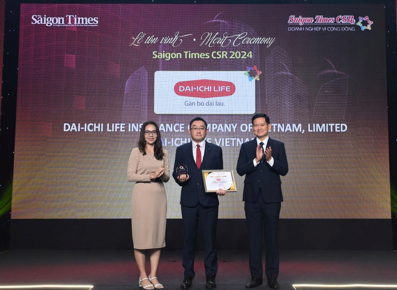 Ông Đặng Hồng Hải, Tổng Giám đốc Dai-ichi Life Việt Nam, chia sẻ: “Chúng tôi rất tự hào đây là năm thứ 6 liên tiếp, Dai-ichi Life Việt Nam được tôn vinh “Doanh nghiệp Vì Cộng đồng – Saigon Times CSR”. Thực hiện trách nhiệm xã hội là một trong những mục tiêu trọng tâm của Công ty trong chiến lược xây dựng thương hiệu dài hạn và phát triển bền vững, do đó, Dai-ichi Life Việt Nam sẽ tiếp tục thể hiện cam kết mạnh mẽ và nỗ lực hơn nữa trong các hoạt động hỗ trợ cộng đồng và bảo vệ môi trường nhằm mang đến cuộc sống tốt đẹp hơn cho người dân Việt Nam, hướng đến xây dựng một tương lai an tâm và tươi sáng cho mỗi người, mỗi nhà, vì một Việt Nam xanh, khỏe mạnh và hạnh phúc.”