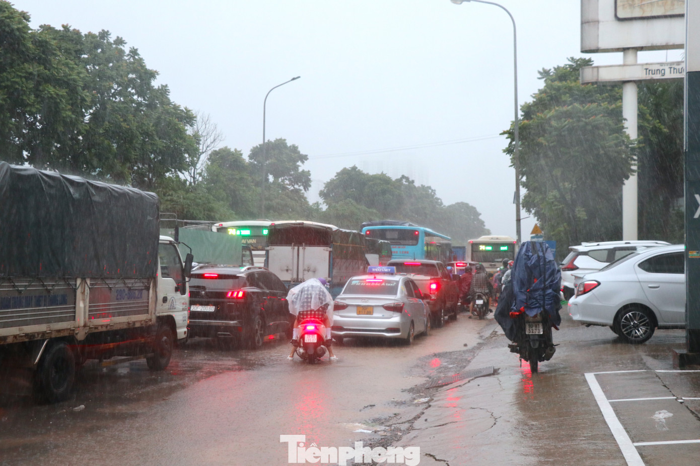 Nhiều đoạn, dòng xe cộ nhích từng tí một trên đường trong cơn mưa nặng hạt kéo dài.