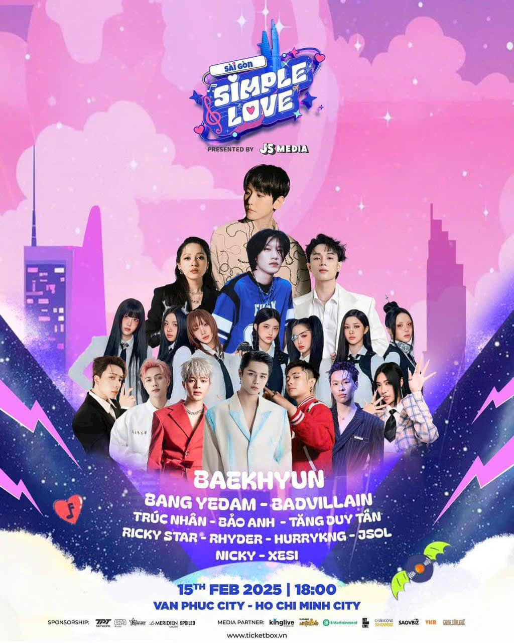 Dàn nghệ sĩ biểu diễn của Sài Gòn Simple Love được công bố gồm Baekhyun (EXO), Bang Yedam (cựu thành viên TREASURE), Trúc Nhân, RHYDER, HURRYKNG... Sở hữu những cái tên hàng đầu của K-Pop lẫn những gương mặt xu hướng của V-Pop, nhưng giá vé của đêm nhạc này bị cho là quá đắt.