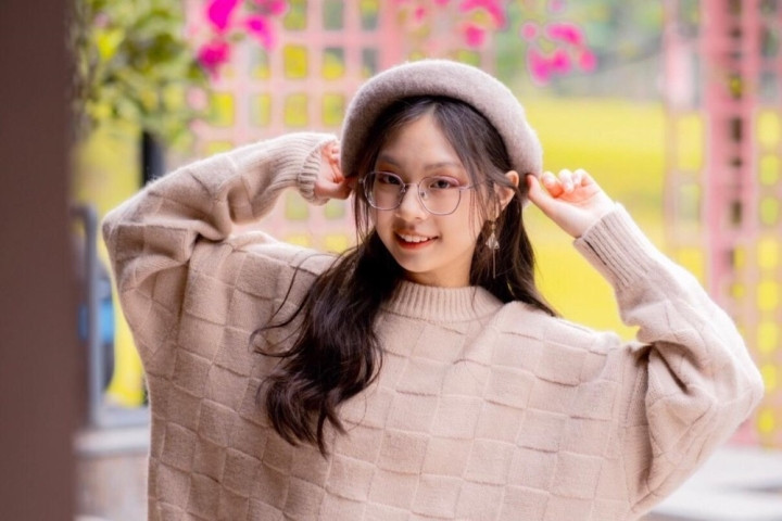 Cặp kính tròn có thể vô tình trở thành vật phẩm "phong ấn nhan sắc" của nhiều người, nhưng với Châu Giang lại vừa là người bạn đồng hành vừa là công cụ khiến cô bạn trở nên đáng yêu hơn.