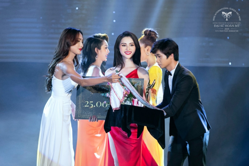Phùng Trương Trân Đài chính thức được xướng tên ở ngôi vị cao nhất. Giây phút trao vương miện cho Đại Sứ Hoàn Mỹ 2020: Trân Đài nhận vương miện từ Hoa hậu chuyển giới Đỗ Nhật Hà.