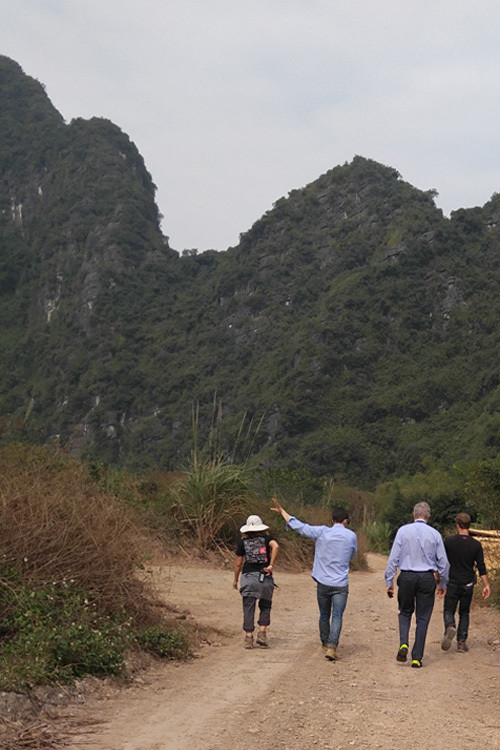 Rời trại chính, Đại sứ đi theo con đường đất ra trường quay. Ninh Bình là trường quay lớn nhất ở Việt Nam của đoàn Kong: Skull Island. Êkíp phim Hollywood ghi hình ở đây trong 15 ngày từ 27/2 tới 13/3. Các trường đoạn phim ghi hình ở Ninh Bình rất quan trọng với trong cốt truyện giả tưởng. Các cảnh phim ghi hình ở đây kết nối chặt chẽ với các cảnh quay tại hai bối cảnh còn lại là Hawaii (Mỹ) và Australia. Bối cảnh chính là một thung lũng rộng 2 ha bên trong khu di sản. Vì lý do bảo mật, đoàn phim không tiết lộ các hình ảnh liên quan đến nội dung phim.