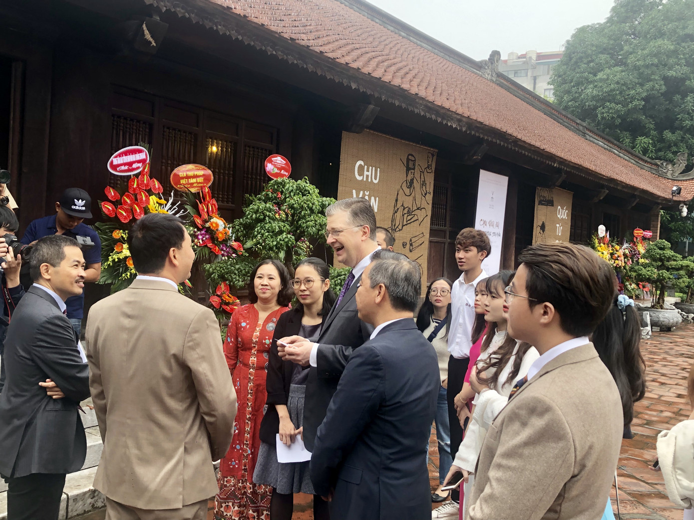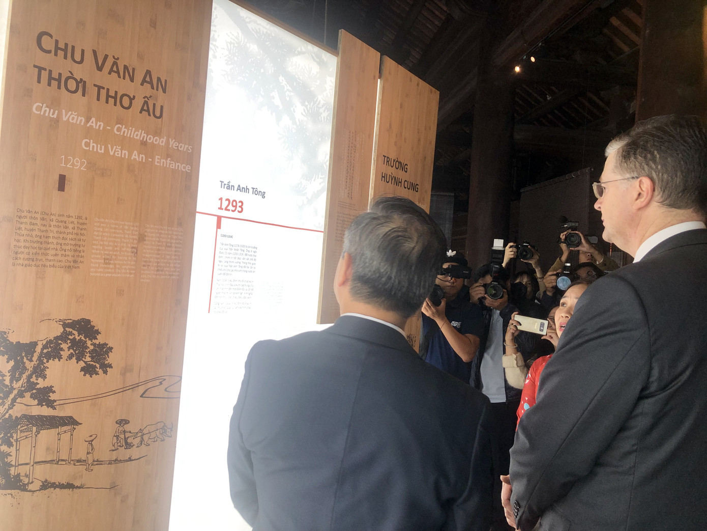 Đại sứ Kritenbrink là vị khách nước ngoài đầu tiên thăm khu triển lãm “ Chu Văn An- thượng tường sơn Đẩu”.