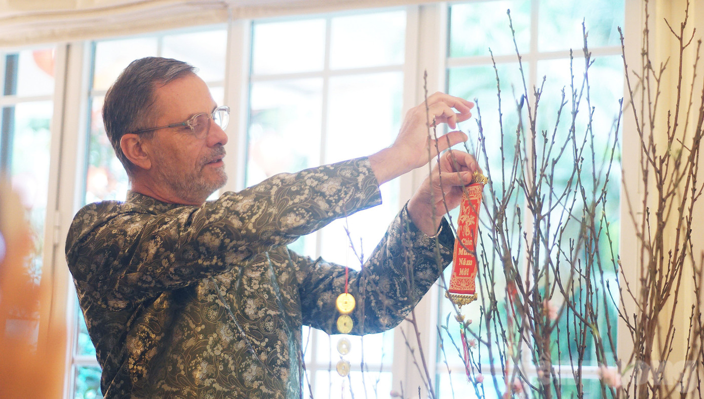 Năm 2025 sẽ là lần thứ hai Đại sứ Olivier Brochet đón Tết Nguyên đán tại Việt Nam. Ông cảm nhận được những giá trị tinh thần mà người Việt Nam nâng niu, gìn giữ qua từng năm và thể hiện vào mỗi dịp Tết. Đó là tình cảm gia đình, bè bạn, quý trọng thầy cô giáo, người cao tuổi.