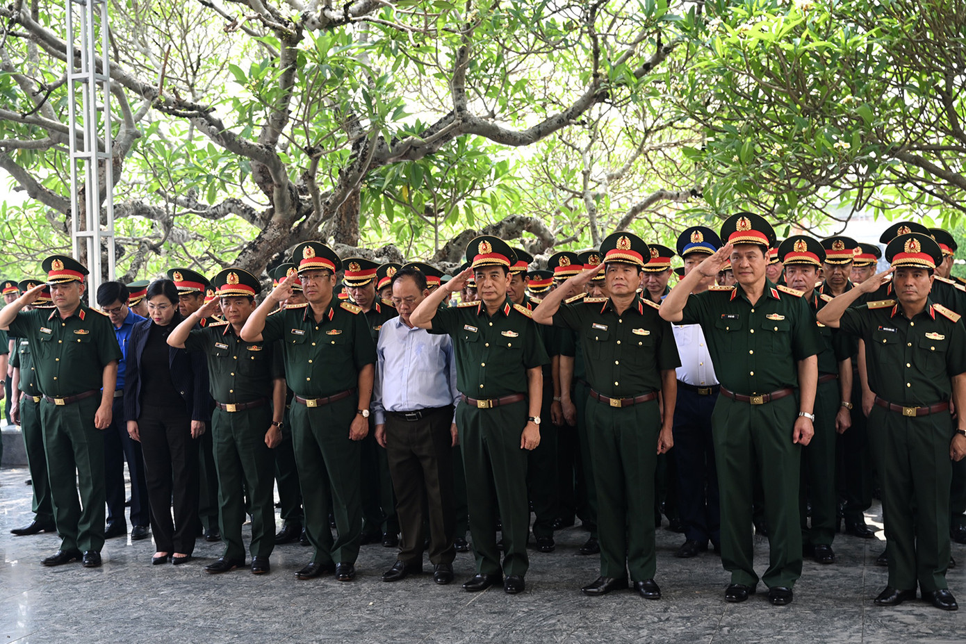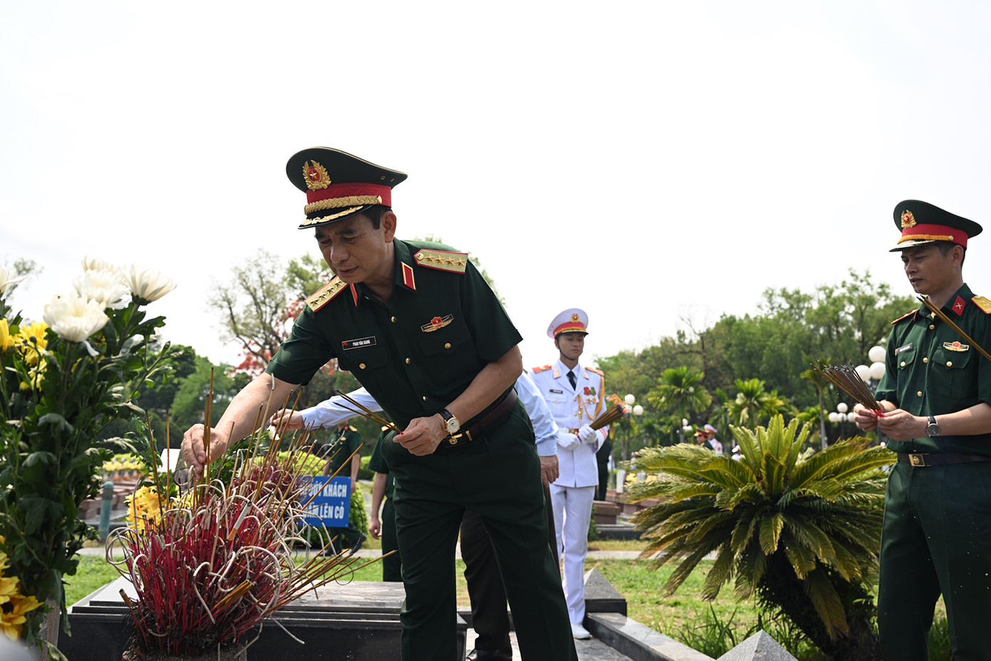 | Trước đó, Đại tướng Phan Văn Giang và đoàn công tác đã đến thắp hương, tri ân các anh hùng, liệt sỹ tại Nghĩa trang liệt sĩ quốc gia A1. |