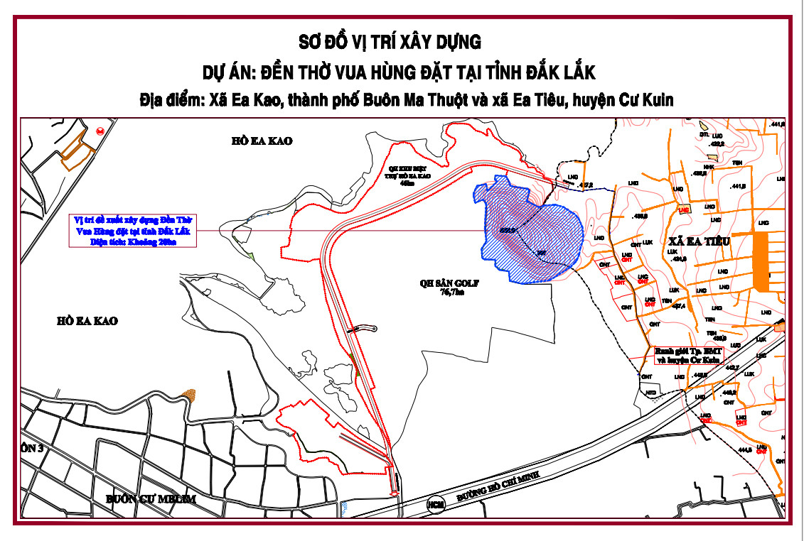 Về vị trí xây dựng đền thờ Vua Hùng, Ban Thường vụ tỉnh uỷ Đắk Lắk thống nhất chủ trương xây dựng tại đồi Cư Mblim, thuộc xã Ea Kao (TP Buôn Ma Thuột) và xã Ea Tiêu (huyện Cư Kuin), diện tích khoảng 20ha, bằng nguồn vốn xã hội hoá. Khu vực này có địa thế sơn thủy hữu tình (có đồi, rừng và hồ nước Ea Kao tuyệt đẹp).