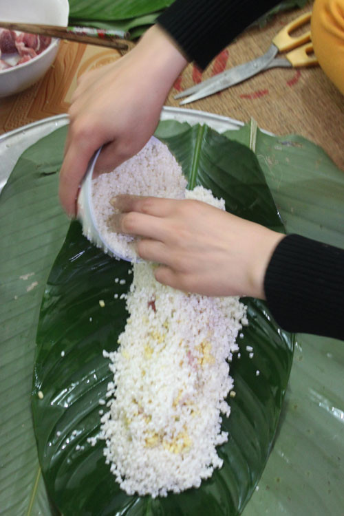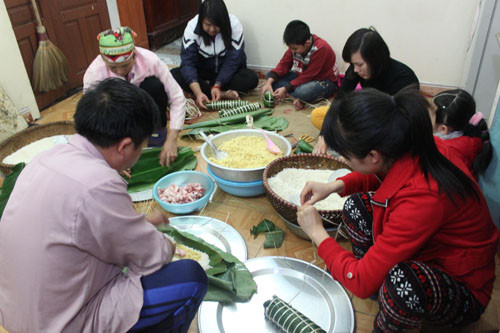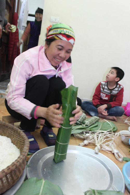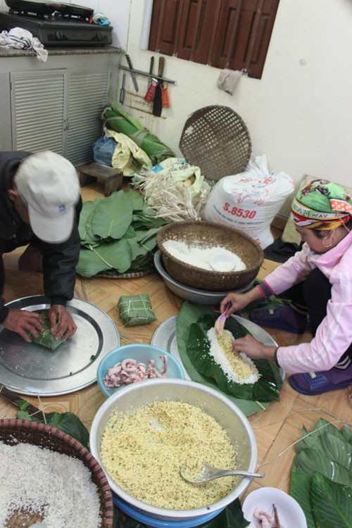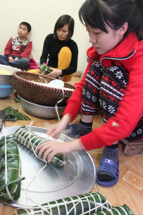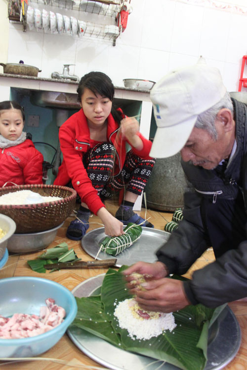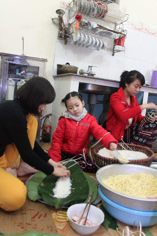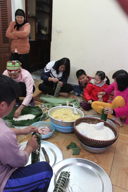 Đại gia đình dậy từ 5 giờ sáng để gói bánh chưng.