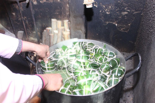 Bánh được đưa vào nồi, thời gian luộc bánh khoảng 10-12 giờ đồng hồ.