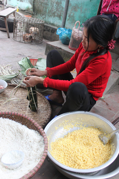 Người dân ở thôn Thanh Chiểu, nhà nào cũng tự gói bánh.