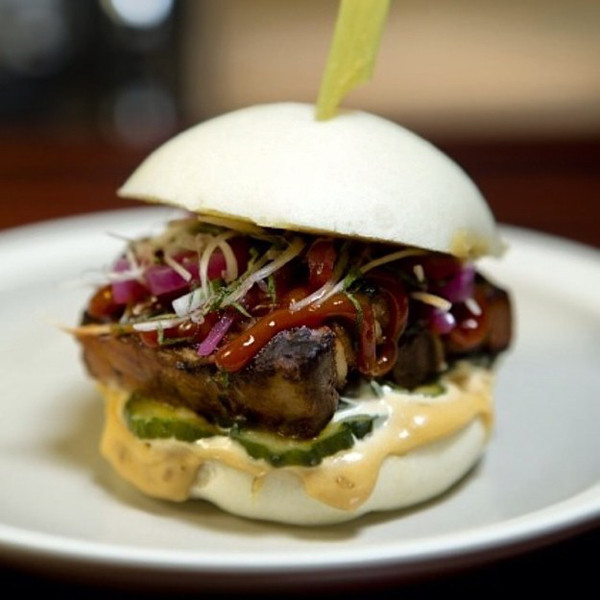 Miếng bánh màn thầu (bánh bao) được chế biến như bánh kẹp, bên trong là thịt lợn hoặc sườn, rau củ cùng nước sốt đặc biệt từ vùng Tứ Xuyên sẽ làm hài lòng những tín đồ món Hoa khó tính nhất.