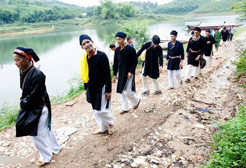 Trước khi sang nhà gái, nhà trai cử một đoàn đi đón dâu với số lượng bắt buộc là 11 người trong đó có trưởng đoàn, chủ hôn, chú rể, phù rể và các nam thanh niên trẻ, khỏe có tài hát đối đáp.