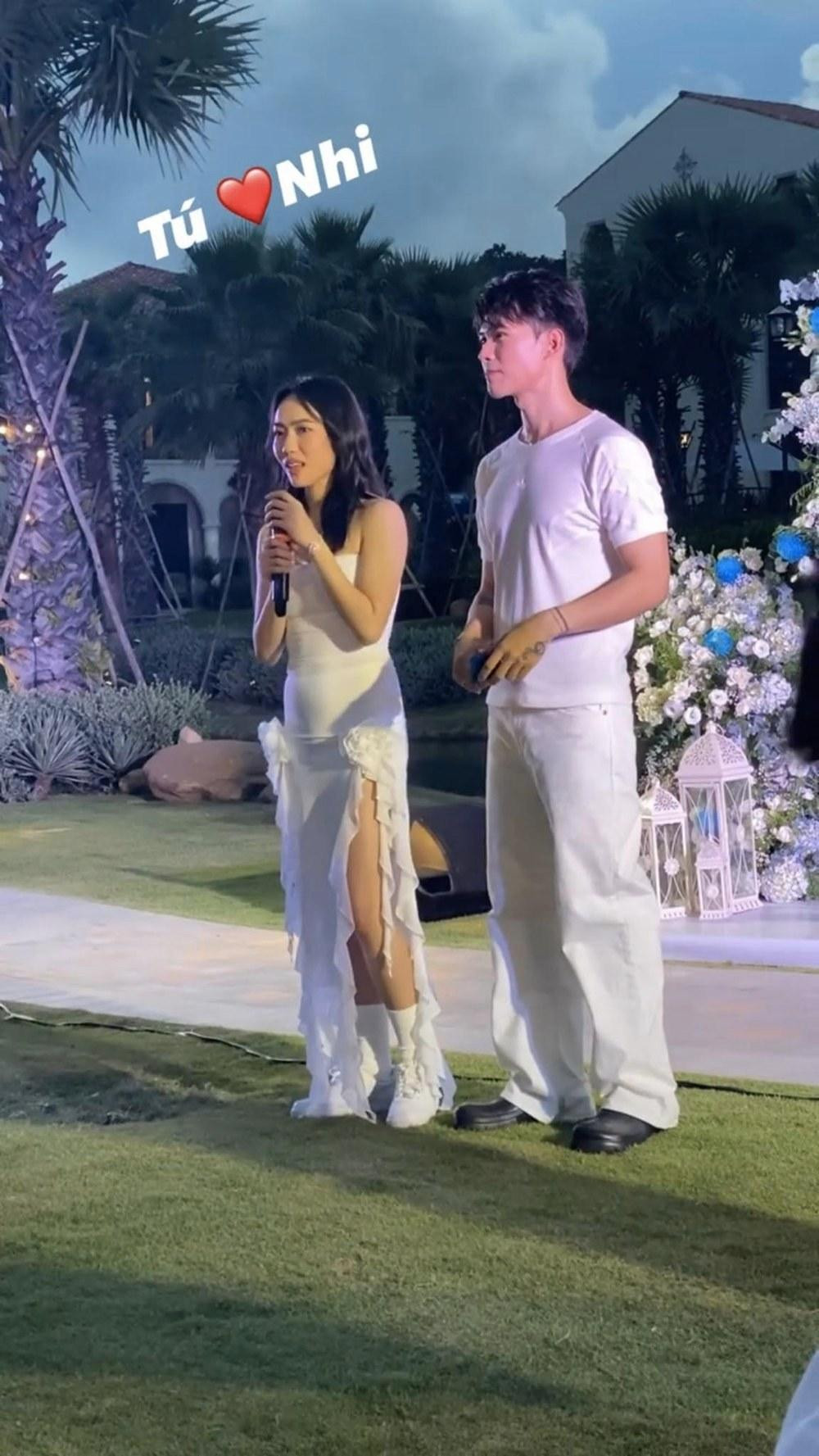 Diệu Nhi và Anh Tú gửi lời cảm ơn đến dàn khách mời đã có mặt đông đủ để tham dự hôn lễ của cả hai vào ngày mai. Bên cạnh đó, "cô dâu tháng 10" cũng không quên "tấu hài" khi nhờ Trấn Thành "lên kịch bản" cho buổi tiệc của mình.